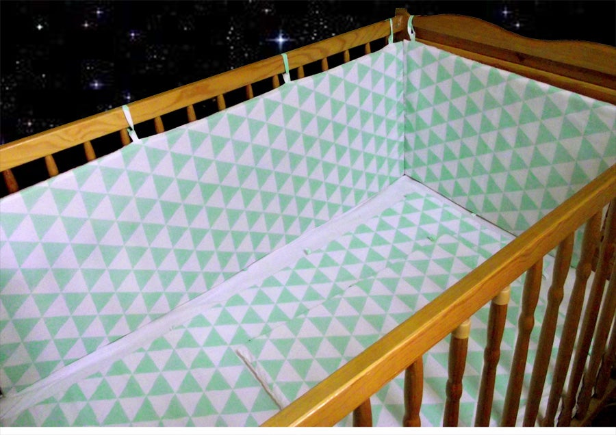 Długi ochraniacz na całe łóżeczko łóżeczko 360 cm MIĘTOWE TRÓJKĄTY