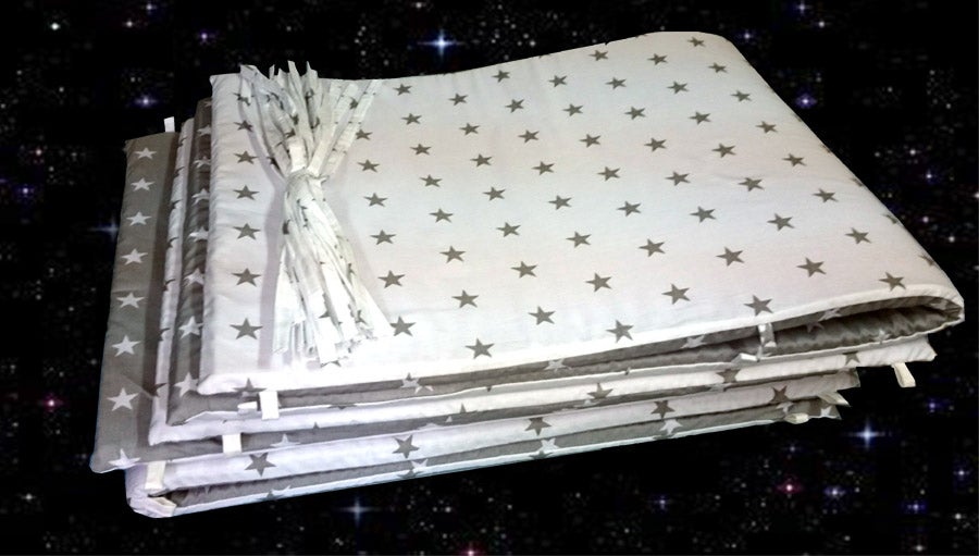 Długi ochraniacz na całe łóżeczko łóżeczko 360 cm GWIAZDKI BIAŁE/SZARE